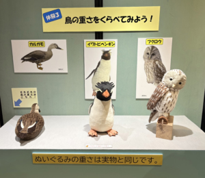 飛ぶ鳥飛ばない鳥の体重を実際に持って比較できます♪